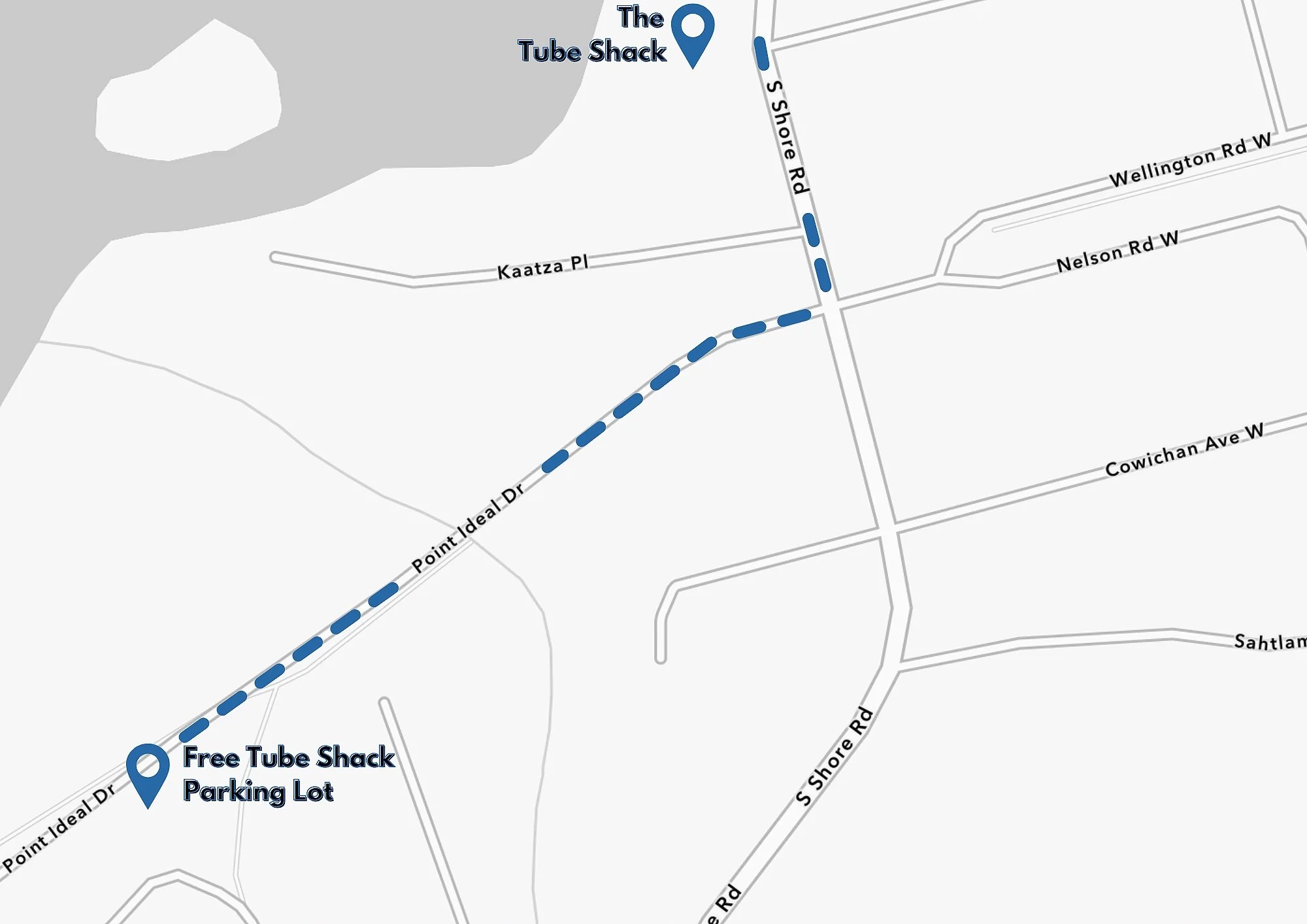 Parking here is free with no time limit for tubers. Park your vehicle and walk over to The Tube Shack (5 mins). We will drop you back off at the parking lot after your tube.