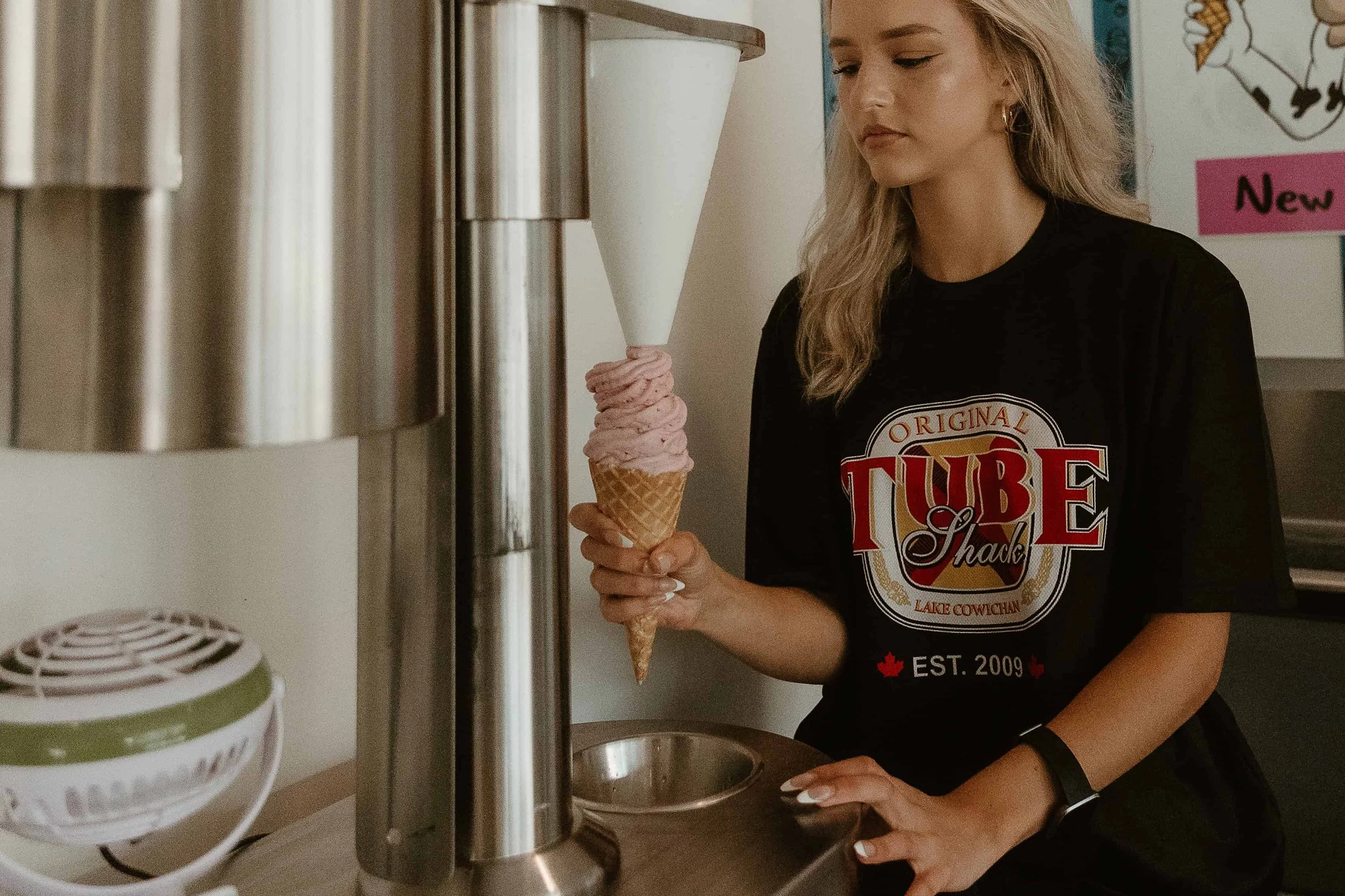 New Zealand style creamery selling delicious soft-serve ice cream blended with real fruit! They also have retro arcade games and soft drinks. Bonus, enjoy a discount when adding ice cream cones to your tube rental through the Tube Shack!